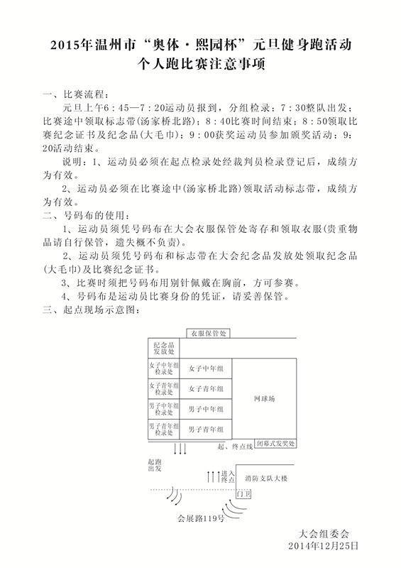 2015年温州市元旦健身跑个人跑比赛注意事项