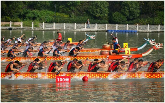 各龙舟队奋勇争先