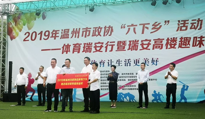 开展以送卫生、教育、法律、文化、科技、体育为主要内容的“六下乡”活动,是市政协多年来落实“以人民为中心”发展思想的生动实践,是服务群众、服务基层的特色品牌。5月20日,温州市政协“送体育下乡”的脚步来到瑞安市的高楼镇,将文体表演、趣味运动会、国民体质检测、科学健身指导……一份份“体育惠民大餐”带到了基层百姓身边。2019年温州市政协“六下乡”活动——体育瑞安行暨瑞安高楼趣味运动会在这里隆重举行。