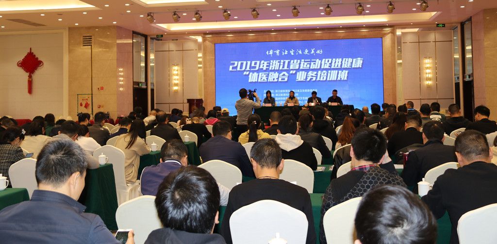 11月25日,2019年浙江省运动促进健康“体医融合”业务培训班在市区金球国豪大酒店开班。共有来自宁波以及我市各县(市、区)120余名学员参加。