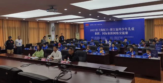 10月31日,2021年上海虹口-浙江温州少年儿童象棋、国际象棋网络交流赛在温州市体育局、虹口区少体校棋牌活动中心两地举行。来自温州和上海两地的64名小棋手“云端”对弈,相互切磋,共同进步。