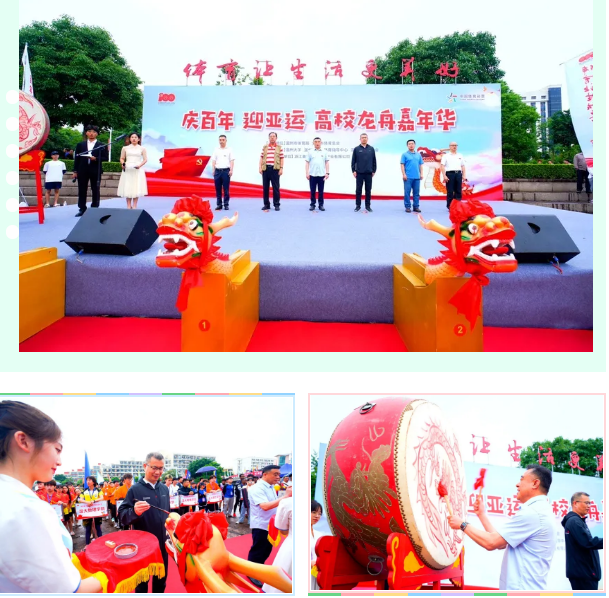 随后,由市体育局局长张志宏宣布活动启动,温州大学副校长薛伟和浙江省龙舟协会主席王成云分别击鼓鸣锣开赛。