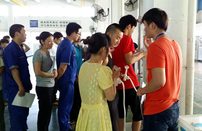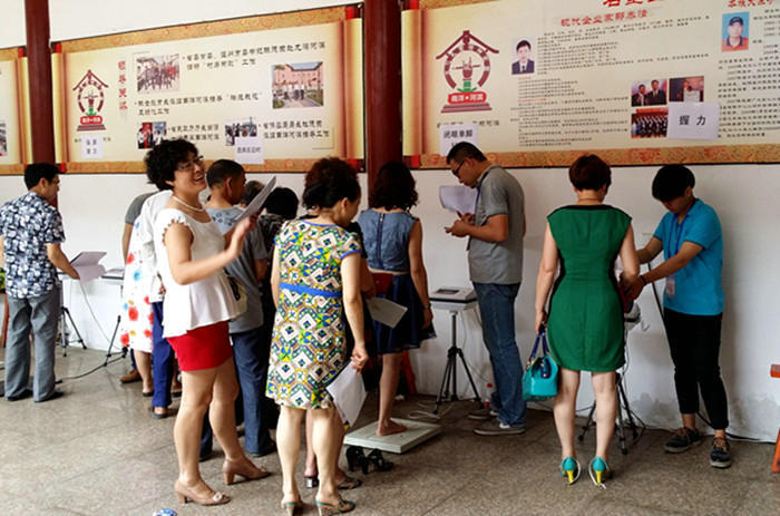 图5 高新园区正泰集团测试现场,职工正在进行肺活量测量