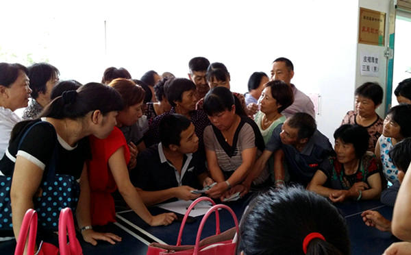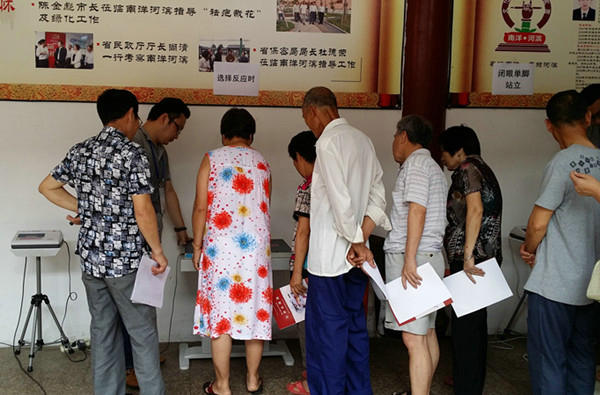 图2 龙湾区瑶溪街道测试现场,村民排队进行选择反应时测试