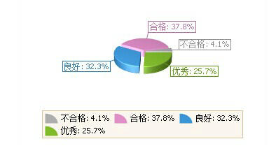 此次我市国民体质监测整体达到合格及以上(合格率)的比例为95.9%。整体人群达到优秀的比例为25.7%,良好的比例为32.3%,合格的比例为37.8%,不合格的比例为4.1%。(见下图)