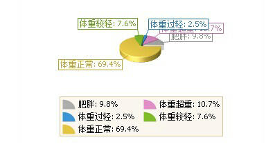 根据坐位体前屈总体评价分布图显示,优秀人数占总体的百分比为9.6%。良好人数占总体的百分比为19.3%。中等人数占总体的百分比为25.4%。稍差人数占总体的百分比为27.9%。差人数占总体的百分比为17.8%,说明这部分人群腿部的力量差,肌肉少,容易导致腿部骨质疏松、腿部肌肉劳损和骨折。(见下图)