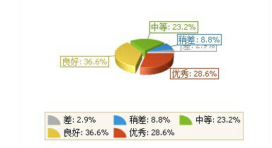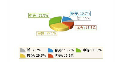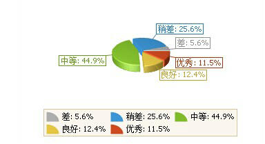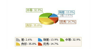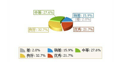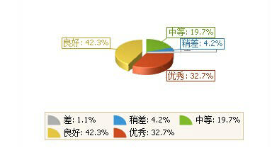根据选择反应时总体评价分布图显示,优秀人数占总体的百分比为32.7%。良好人数占总体的百分比为42.3%。中等人数占总体的百分比为19.7%。稍差人数占总体的百分比为4.2%。差人数占总体的百分比为1.1%,说明这部分人群的反应和协调性差,在遇到突发事件和紧急情况时,不容易立即做出正确的反应(见下图)
