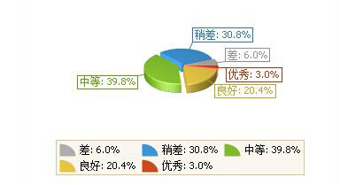 根据台阶指数总体评价分布图显示,优秀人数占总体的百分比为3%。良好人数占总体的百分比为20.4%。中等人数占总体的百分比为39.8%。稍差人数占总体的百分比为30.8%。差人数占总体的百分比为6%,说明这部分人群的心肺功能和恢复能力差,经常会出现气喘和呼吸急促的现象,且心脑血管类慢性疾病的发病风险很高(见下图)