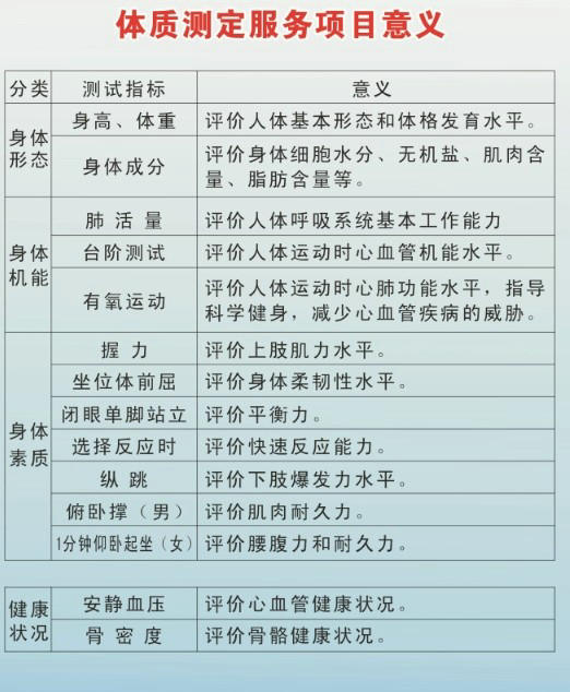 体质测定服务项目的意义