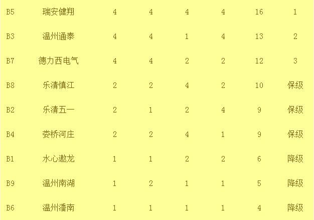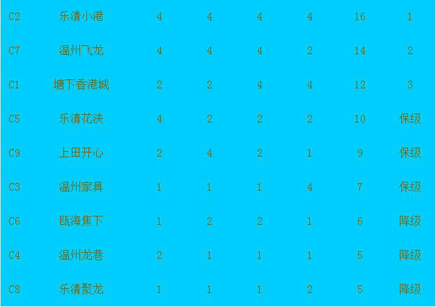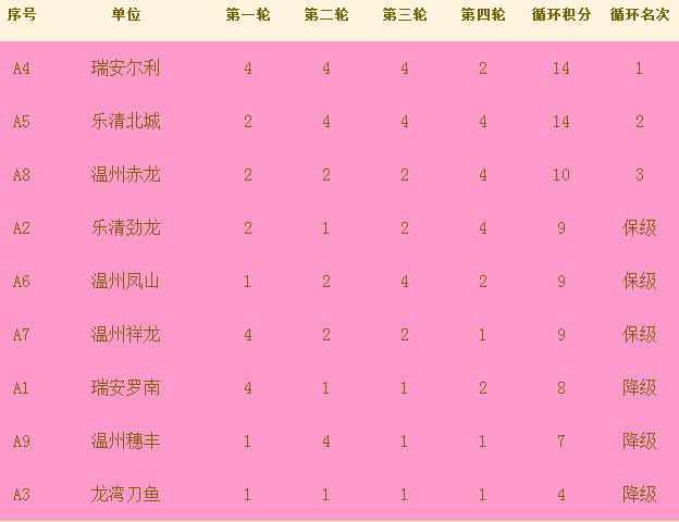 2014温州市龙舟俱乐部联赛(第一站)循环赛积分表