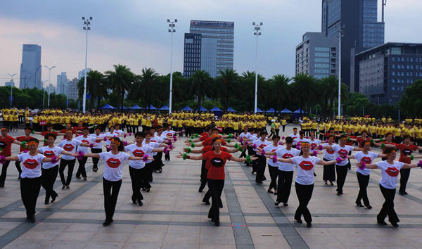 尽管天气酷热,但丝毫阻挡不了广大群众参与健身活动的热情,来自我市1000多名健身排舞和健身舞爱好者参加了展示活动。