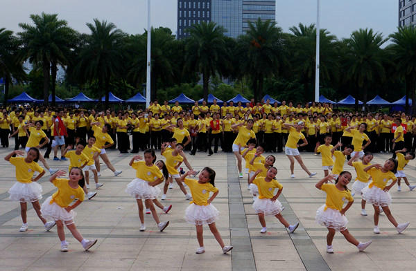 2014年温州市“全民健身日”活动启动仪式暨“时尚体育”健身排舞展示大会昨顺利举行