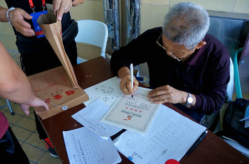 握力项目参赛者检录,我中心工作人员正在一一核对