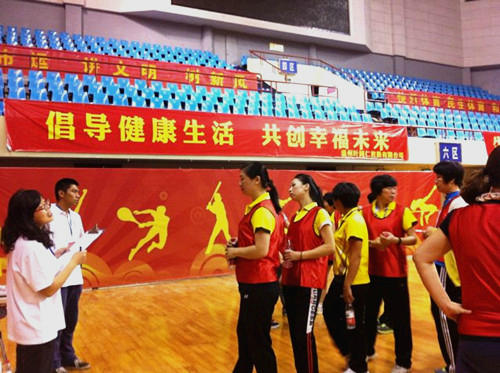 由我中心协办的温州市第十五届运动会行业系统部体能测试比赛于2013年10月18日上午在体育中心体育馆举行。来自我市政法、农口、教育等八大行业系统的144人参加了比赛。此次体能测试比赛设“坐位体前屈”、“肺活量”、“握力”、“两点侧滑(40—59周岁)、象限跳(20—39周岁)”四个项目,分男女甲乙组别进行,取个人全能成绩,分别考验选手的柔韧性、心肺功能、力量和灵敏度。经过半天的比赛,最终,我市卫生局派出的卫生系统代表队夺得团体总分第一名,政法系统和教育系统居第二、三位。