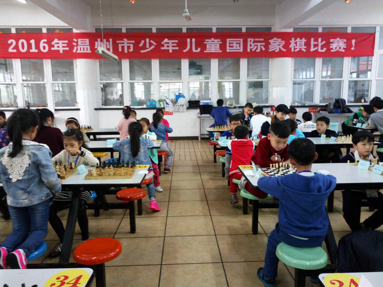 4月23日—24日,2016年温州市少年儿童国际象棋比赛在市区百里路小学如期举行,来自我市各县(市、区)的学校、幼儿园、培训机构、俱乐部代表队共24支589人参加了比赛。这是有史以来参加人数最多的一届儿童国际象棋比赛。